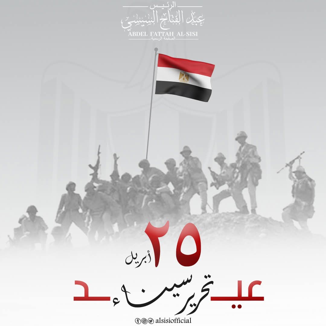 في ذكرى تحرير سيناء المجيدة، أتوجّه بخالص التهنئة إلى شعب مصر العظيم، مجدّدًا العهد على مواصلة البناء وحماية تراب هذا الوطن الذي رُوي بدماء الأبطال، و الحفاظ على مقدرات الشعب، معتمدا على الله تعالى ، ومرتكزا على وحدة المواطنين ، ووعيهم بحجم التحديات .