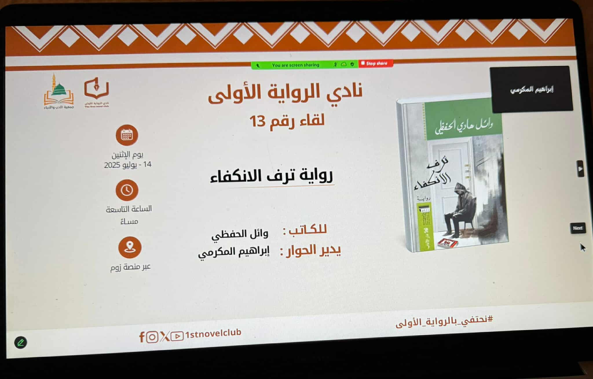 “نادي الرواية الأولى” يستضيف وائل الحفظي في جلسة أدبية لمناقشة “ترف الانكفاء”