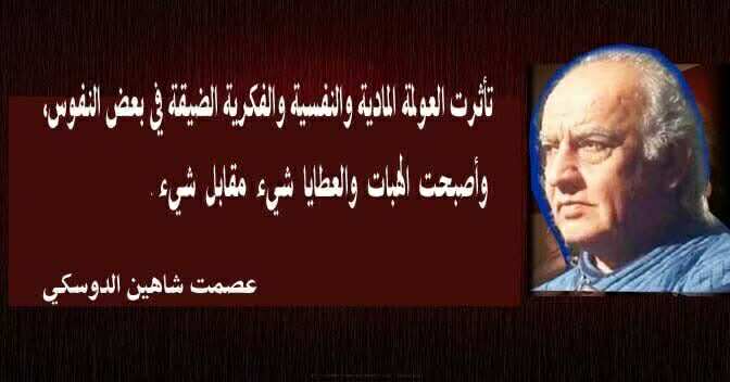 * تأثّرتِ العولمة المادّيّة والنّفسيّة والفكريّة الضّيّقة في بعض النّفوس – عصمت شاهين الدوسكي