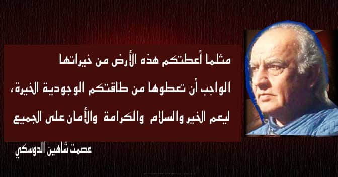 * مثلما أعطتكم هذه الأرض من خيراتها الواجب أن تعطوها من طاقتكم الوجوديّة الخيّرة،ليعم الخير والسّلام والكرامة والأمان على الجميع .