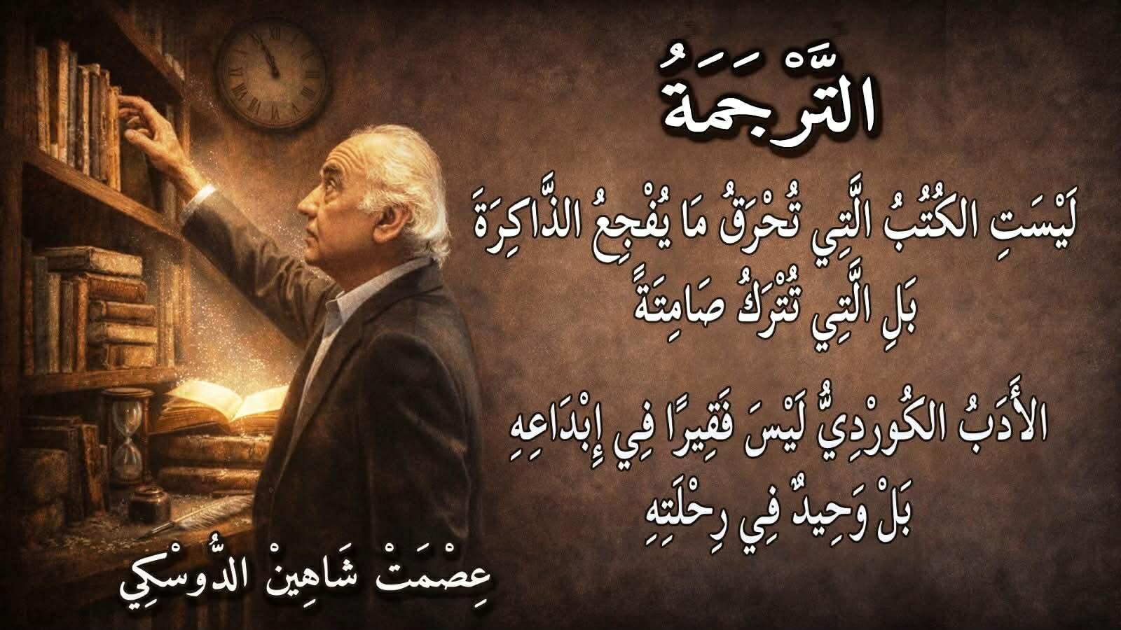 فِي السَّاحَةِ الأَدَبِيَّةِ الكُرْدِيَّةِ… كُتَّابٌ وَشُعَرَاءُ مُبْدِعُونَ… أَعْمَالُهُمْ تَغْفُو عَلَى الرُّفُوفِ، مُكَدَّسَةً، يَتَرَاكَمُ عَلَيْهَا الغُبَارُ… يَا تُرَى لِمَاذَا لَا تُتَرْجَمُ أَعْمَالُ الأُدَبَاءِ الكُورْدِ المُتَمَيِّزِينَ إِلَى اللُّغَةِ العَرَبِيَّةِ…؟ لِيَطَّلِعَ عَلَيْهَا العَرَبُ والعالم بِصُورَةٍ عَامَّةٍ وَالعِرَاقِيُّونَ بِصُورَةٍ خَاصَّةٍ… الفُلْكْلُورُ وَالتُّرَاثُ وَالتَّارِيخُ الأَدَبِيُّ الكُرْدِيُّ… أَزْخَرُ بِالمَلَامِحِ وَالأَسَاطِيرِ وَالقِصَصِ الوَاقِعِيَّةِ الرَّائِعَةِ، وَالإِبْدَاعَاتِ الفِكْرِيَّةِ الَّتِي تَتَعَلَّقُ بِهٰذَا الإِنْسَانِ المُرْتَبِطِ بِهٰذِهِ الأَرْضِ وَيَسْكُنُ فِي جَسَدِهِ الحُبُّ وَالأَلَمُ… لَيْسَ الكُتُبُ الَّتِي مَر عَلَيْهَا الزَّمَنُ مُرُورَ الكِرَامِ فَقَطْ، بَلِ المُعَاصِرِينَ مِنَ الكُتَّابِ وَالشُّعَرَاءِ… إِنَّهَا خُطْوَةٌ تَتَّخِذُهَا جَمِيعُ الدُّوَلِ الَّتِي تَبُثُّ لِلْعَالَمِ رُوحَ شَعْبِهَا، نِضَالَهُ، طُمُوحَهُ، آلَامَهُ، أُمْنِيَّاتِهِ… وَأَحْلَامَهُ… كَيْفَ عَرَفْنَا فِيكْتُورَ هِيغُو، سَارْتَر، كَافْكَا، وَآخَرِينَ إِنْ لَمْ تُتَرْجَمْ أَعْمَالُهُمْ…؟