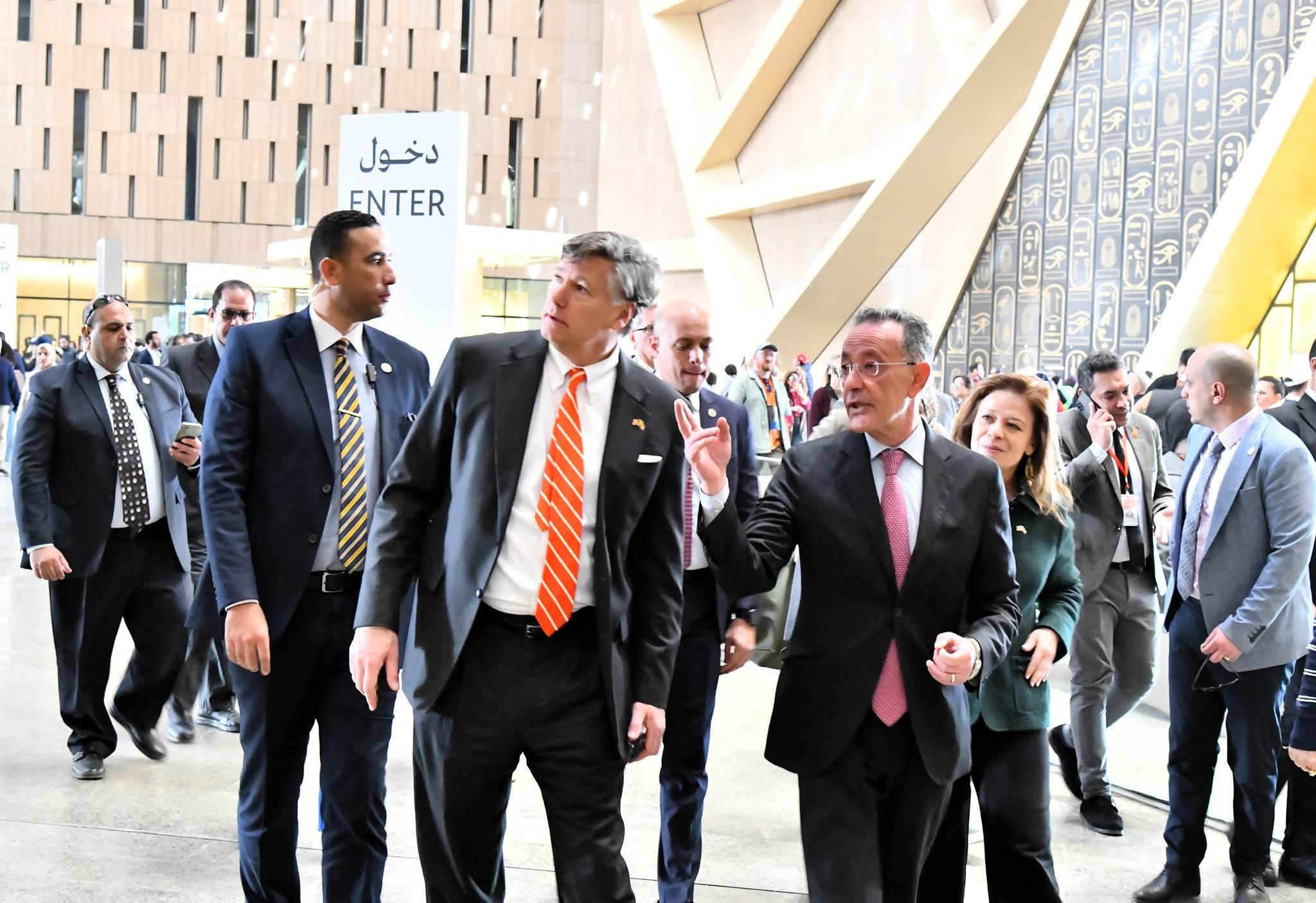استقبل المتحف المصري الكبير، السيد كريستوفر لاندو نائب وزير الخارجية الأمريكي، والسيد فرخ حامد الدين شريف زاده نائب وزير خارجية جمهورية طاجيكستان والوفود المرافقة لهما، وذلك خلال زيارتهما الرسمية إلى مصر.