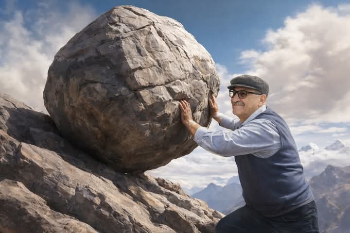 ومع ذلك اختار أن يدفع الصخرة.