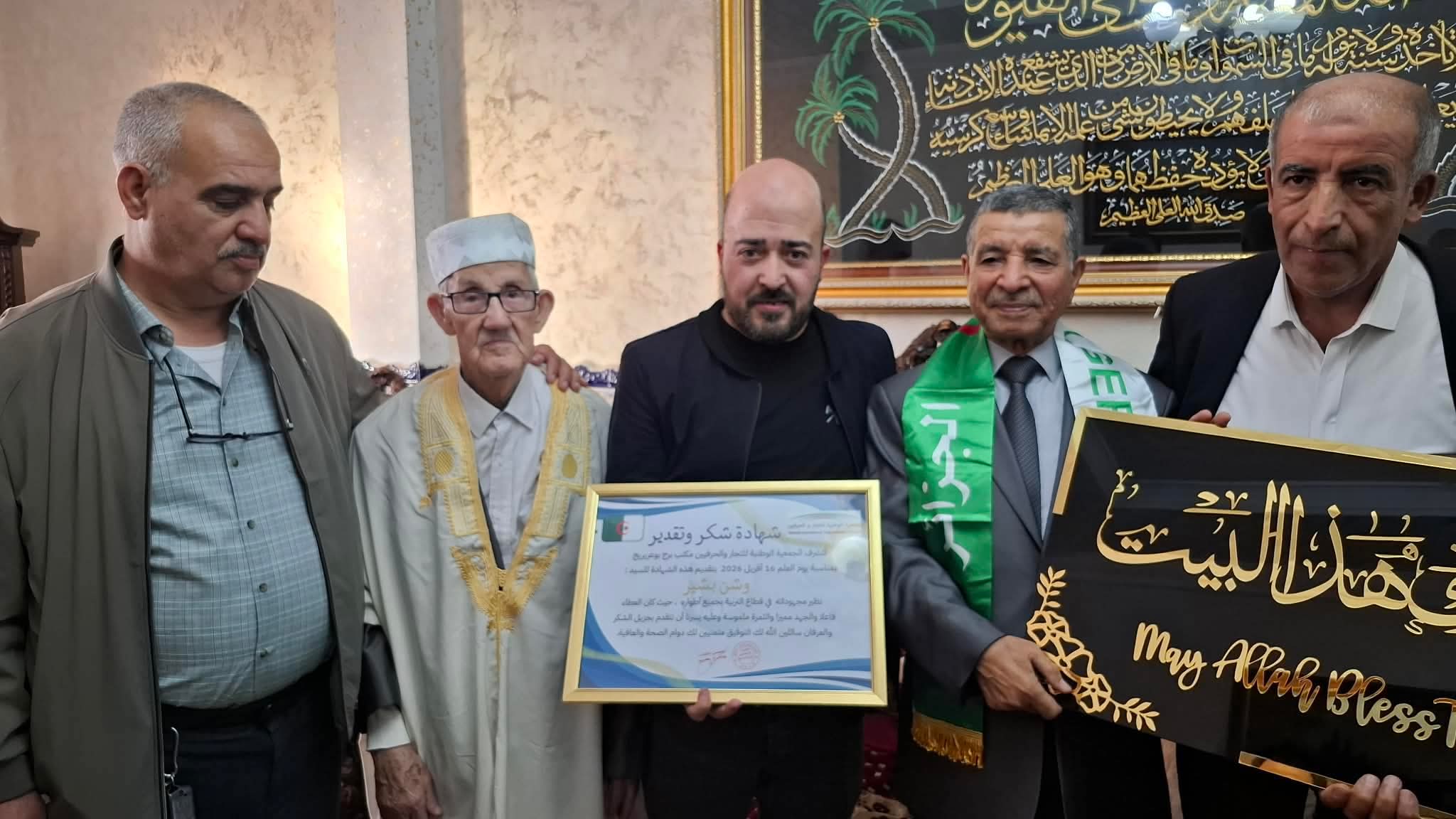 بمناسبة إحياء ذكرى يوم العلم المصادف لـ 16 أفريل 2026، وفي أجواء مفعمة بالتقدير والعرفان، بادرت كل من جمعية التجار والحرفيين لولاية برج بوعريريج، وجمعية الأصول الثقافية، وجمعية الإحسان، إلى تنظيم زيارة تكريمية خاصة إلى منزل السيد وشن بشير، أحد إطارات قطاع التربية البارزين، عرفانًا بما قدمه من خدمات جليلة للوطن.