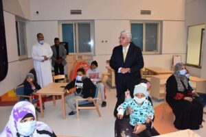 واستقبل قيادات المستشفى “عاشور”، وتم تنظيم جولة له حول الأقسام المختلفة وبنك الدم وتعرف على طبيعة العمل بداخلهم، ثم توجه للقاء عدد من المرضى الكبار والأطفال خلال تلقيهم جرعات وجلسات العلاج اللازمة.