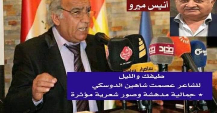 عصمت الدوسكي من روح وإحساس وفكر الزمن الجميل لكنه يحيى بيننا ، ومع الأسف بلا اهتمام من المسؤولين الذين يجلسون على الكراسي الثقافية ويدعون الثقافة والأصالة والحضارة العصرية حتى إنه يحيى بلا وارد يصون به نفسه وعائلته ..!!؟؟ الشاعر المقتدر عصمت الدوسكي بما يكتبه بجمالية مدهشة وصور شعرية مؤثرة وبتعبير روحي ينقل ذهن وروح القارئ بما كتبه من كلمات وأفكار وجمل تنقله روحياً للماضي لتلك اللحظات التي شعر بها ،انه فعلاً إنسان و ينحب من طرف حبيبته التي قد يتصورها أن تكون هي الوحيدة في هذا الكون! ! يومياً نتصفح مئات بل أكثر من ذلك بما يكتبه أدباء زاد عددهم إناثاً وذكورا. ولكن يا ترى هل تدخل هذه القصائد للقلب مثل هذه القصيدة ( طيفك والليل ..؟ )
