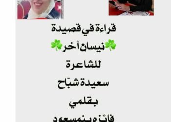 قِراءَةٌ تَفْصِيلِيَّةٌ فِي قَصِيدَةِ (نَيْسَانُ الآخَرِ) لِلشَّاعِرَةِ التُّونِسِيَّةِ: Saïda Chabbeh بِقَلَمِي: فَائِزَةُ بِنمَسْعُود ـــــــــــــــــــــــ تَصْدِيرٌ الشِّعْرُ يَنْتَشِرُ فِي كُلِّ...