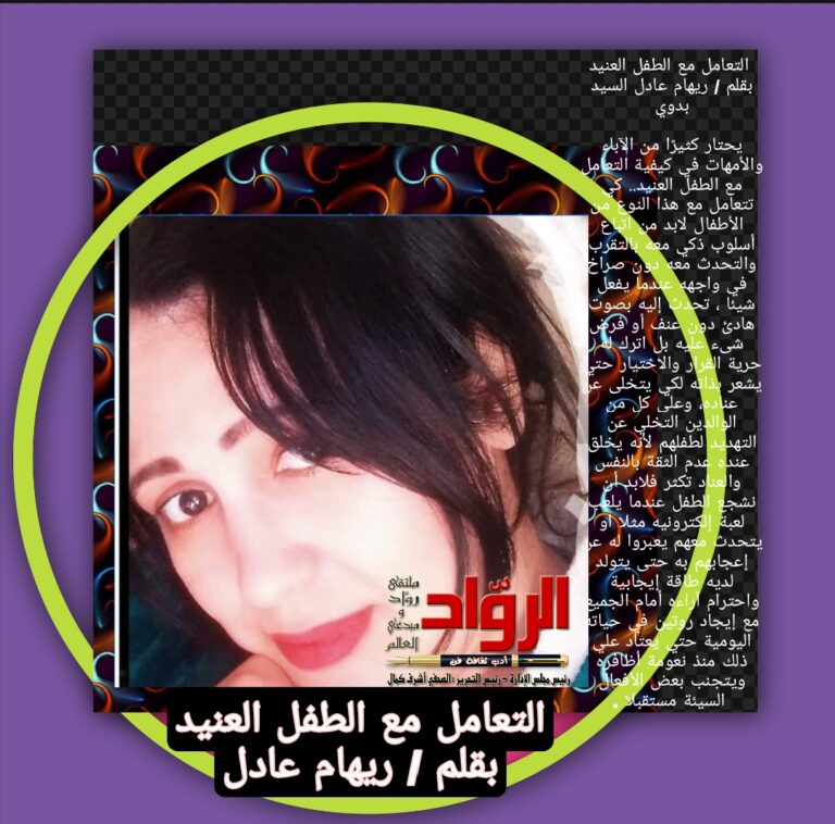 التعامل مع الطفل العنيد بقلم / ريهام عادل السيد بدوي يحتار كثيرًا من الآباء والأمهات في كيفية التعامل مع الطفل العنيد.. كي تتعامل مع هذا النوع من الأطفال لابد من اتباع أسلوب ذكي معه بالتقرب والتحدث معه دون صراخ…