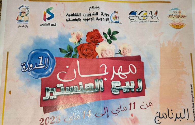 فعاليات مهرجان ربيع المنستير من تنظيم رئيسة مهرجان لؤلؤة عروس البحر الشاعرة و الإعلامية: فوزية فرحات. رفيق بالرزاقة … تونس. ~البرنامج~ الخميس 11 ماي 2023: الساعة الخامسة مساء. ♡ المكان: ساحة 3٠ أوت أمام الولي الصالح سيدي منصور ~افتتاح المهرجان…