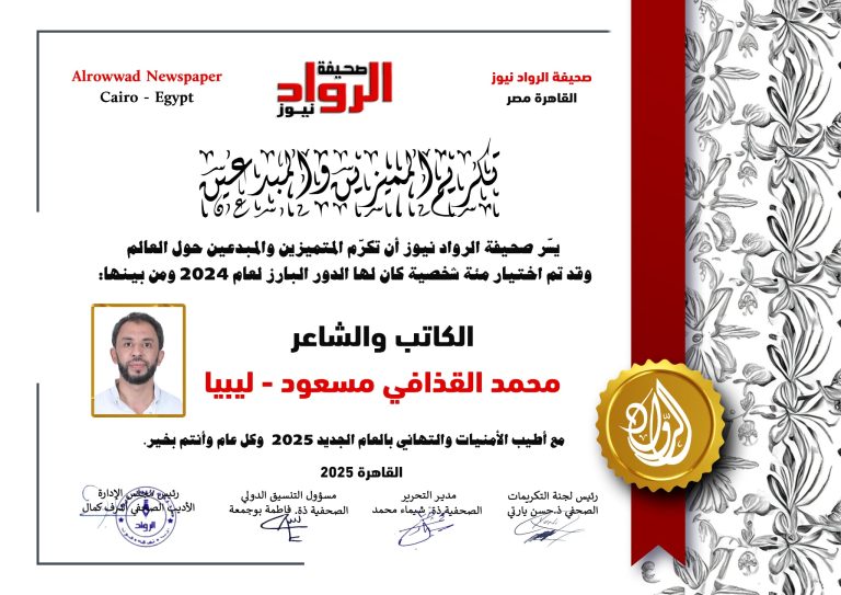 الرّواد نيوز تكرّم الكاتبة الشّاعرة والرّوائية :خيرة الساكت…تونس صحيفة الرواد نيوز – alrouwadnews موسم ثقافيّ جديد حافلٌ وثريّ قريباً، صحيفة الروّاد بحلّة جديدة، نسخة ورقيّة وموقع إلكتروني بمواصفات عالميّة، أنشطة مهرجانات وملتقيات ثقافيّة ومشاركات دوّلية عبر العالم بأسره. لأنّ الرّيادة…