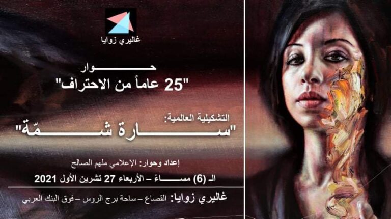 “زوايا” تحتفي باليوبيل الفضي للعالمية “سارة شمّة” _________________________ متابعة الهام عيسى احتفاءً بـ (25 عاماً من الاحتراف)؛ تستضيف غاليري “زوايا” الفنانة التشكيلية السورية العالمية: “سارة شمًة” في أمسية حوارية، وذلك الأربعاء المقبل، الـ (27) من تشرين الجاري، تمام الـ…