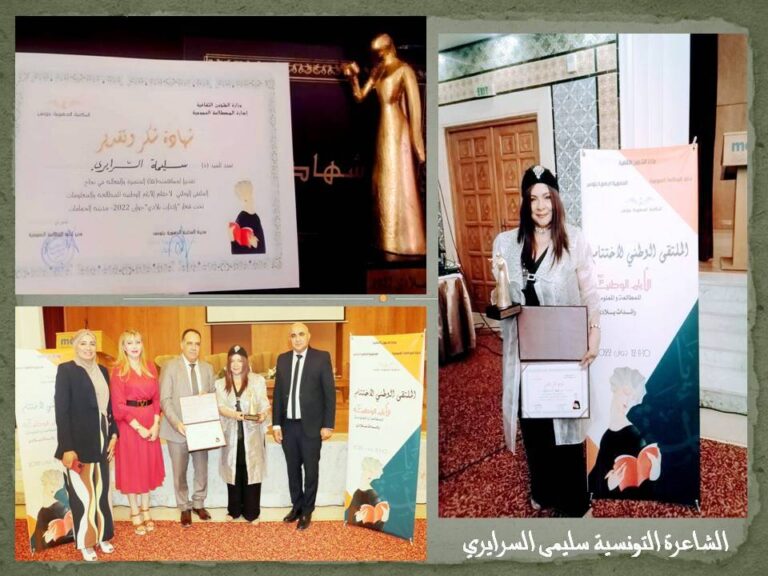 فراشة الشعر التونسي سليمى السرايري …. تتوج كرائدة من (مبدعات البلاد) بقلم : أشرف كمال الشاعرة التونسية، سليمى السرايري، اسمٌ يشقّ طريقه بثبات وثقة في شتى إبداعاته، حرفا، وهي التي تمتلك ناصية الكلمة في 3 دواوين أصدرتها ورقيا بعنواوين…
