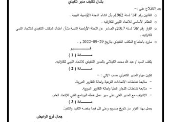 ريم العبدلي قرار رئيس الاتحاد الليبي العام للكاراتية بشأن تكليف مدير التنفيذى ريم العبدلي-ليبيا اصدر رئيس الاتحاد الليبي العام للكاراتية ...