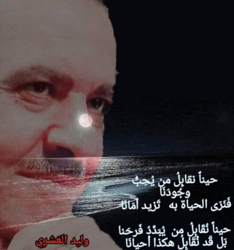 كـلمات الـشـاعـر …. ولـيـد الـعشـري تَجري بنا الأيامُ نَجري خلفَها ونَدُورُ في دوَرَانِها دَوَرَانا حيناً نقابِلُ مَن يُحِبُّ وجُودَنَا فَنَرَى الحياةَ به تَزيد أمَانَا حيناً نُقَابِلُ مَن يُبَدِّدُ فَرحَنا بَل قَد نُقَابِلُ هكذا أحيانَا نبكي من الخِذلانِ في جَنَبَاتِها تَبًّا…