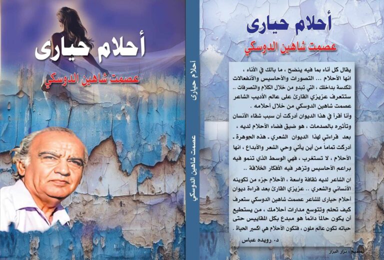 أنيس ميرو يكتب: للشاعر عصمت شاهين الدوسكي صدر ديوان ” أحلام حيارى ” للشاعر عصمت شاهين الدوسكي من مكتبة كازى بوك بحجم المتوسط وعدد صفحاته ( 226 ) ويضم ” 62 ” قصيدة وتصميم الغلاف الفنان الكبير نزار البزاز…