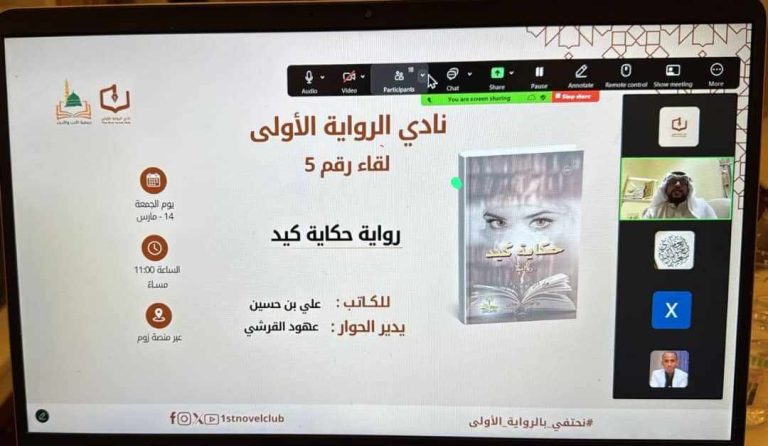 في حوار شيّق ومثمر..السّعلي يغرق نادي الرّواية كيداً خبر صحفي الجمعة14 مارس2025 الصّحفي: محمد نبراس العميسي نظّم نادي الرّواية الأولى، مساء أمس الجمعة، لقاءه الخامس عبر منصّة “زووم” لمناقشة رواية”حكاية كيد” أولى الأعمال الأدبيّة للكاتب…